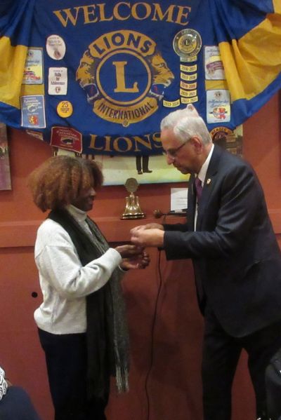 Tring Lions President, Penny Tregillus, has recently presented Melvin Jones Fellowship Awards to Club Members David Lang and Derek Grant in appreciation of their services to the community and the Club. A presentation of an engraved vase and flowers was also made to David's wife, Sue, for her continuing support of the club's activities
